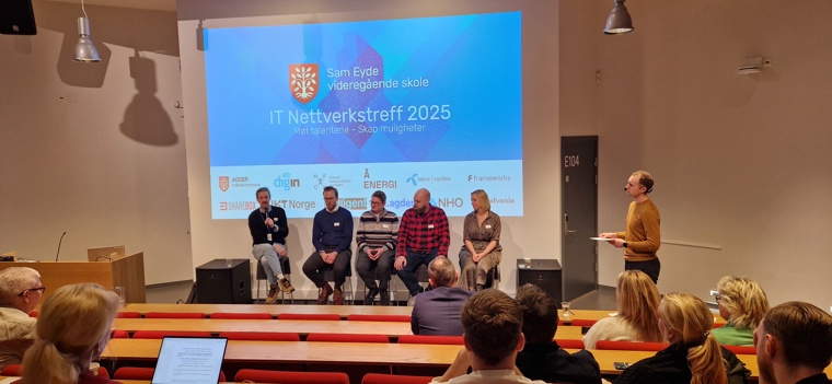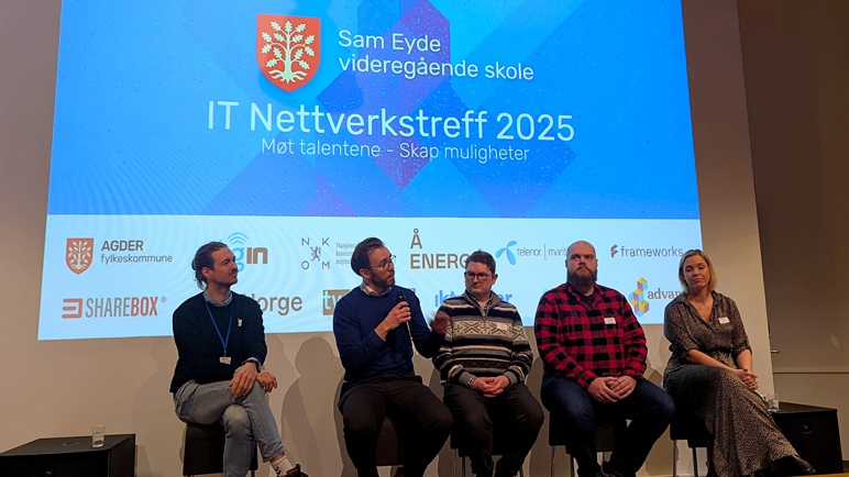 Dagen ble avsluttet med en spennende panelsamtale med representanter fra sentrale organisasjoner som IKT-Norge, Agder fylkeskommune, NHO Agder, Arendal Næringsforening og Nasjonal kommunikasjonsmyndighet (Nkom). Temaet for samtalen var IT-bransjens utvikling og hvordan utdanning og næringsliv kan samarbeide enda bedre for å skape fremtidsrettede løsninger.