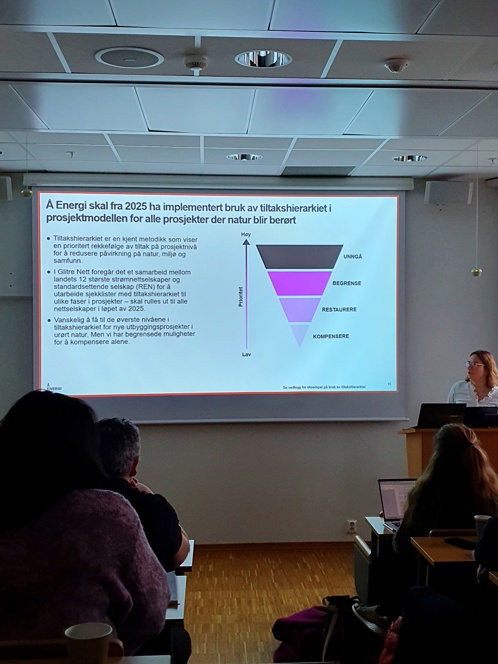 Videre bidro Glitre Nett ved Line Begby-Hagen, Fagansvarlig bærekraft og Å Energi med forretningsutvikler Kristine Lehrmann Solvang som i fellesskap fortalte om caser hvor de hadde jobbet grundig med naturregnskap og naturpositivitet. Dette hadde gitt noen interessante funn og erfaringer som var et godt bidrag til den videre diskusjonen.